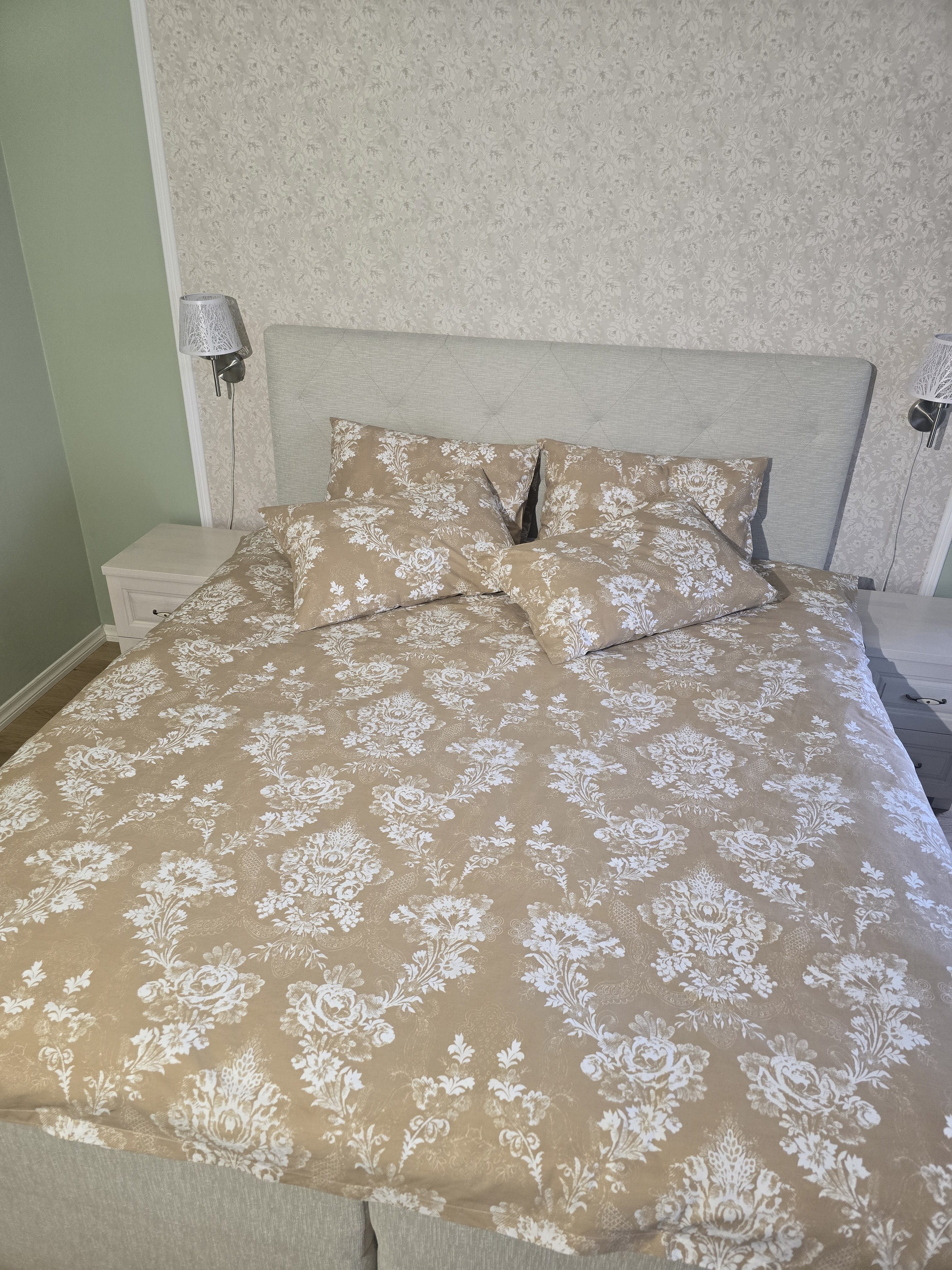 Voodipesud valmivad käsitööna vastavalt esitatud mõõtudele ja kangavalikule eritellimusena.